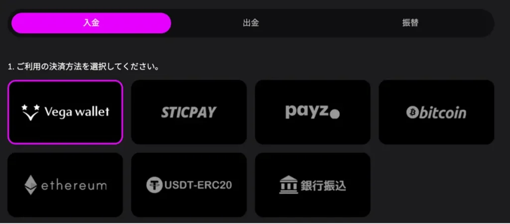 ベガウォレットの出金の場合のみ10,000ドルである点にご注意ください。