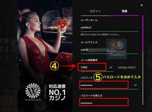 ワンダーカジノの登録は以下の手順で行います。